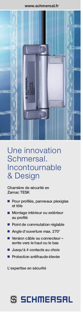Safe living, Safe working... Fort de 40 années d'expérience en France, Schmersal France est votre partenaire sécurité des machines, composants d'automatisme, dispositifs pour ascenseurs, protection grillagée périmétrique…
