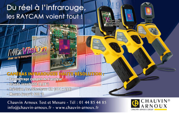 du réel à l'infrarouge, les caméras Raycam, voient tout. Paramétrage complet de l'analyse, grande sensibilité de 1,08°, précision des détecteurs haute résolution de 384x288, mesure jusqu'à 600°C