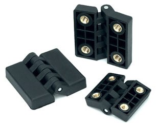 Utilisées dans de nombreuses industries pour de multiples montages, les charnières thermoplastiques d'Ecko Tech se déclinent en versions taraudées, filetées ou à trous passants et permettent une rotation de 180° ou 360°. Elles utilisent un polyamide noir renforcé, résistant aux huiles et graisses. Les parties métalliques sont en acier traité, acier zingué et laiton, la version à trous passants est en inox pour répondre aux conditions d'utilisation les plus sévères.