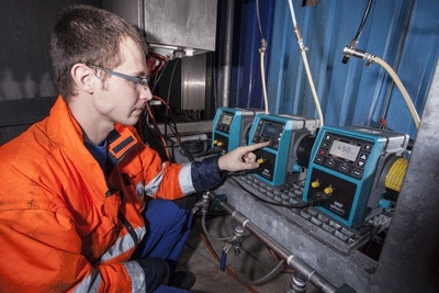 Schoellershammer a donc cherché des solutions alternatives. L'équipe a découvert que la pompe doseuse Qdos, avec sa gamme de débit de 0,1 à 500 ml/min, convenait pour le débit de 100 à 450 ml/min de l'application. Comme toutes les pompes péristaltiques, ce modèle possède un mode auto-amorçage et fonctionnement à sec, ce qui signifie qu'il n'est pas nécessaire d'ajouter manuellement une dose d'agent anti-mousse après une intervention d'entretien. De plus, la pompe fonctionne sans auxiliaires. Il n'y a plus, désormais, ni clapets bloqués ni joints déchirés chez Schoellershammer. L'unique composant auxiliaire dans les pompes Qdos est la tête de pompe brevetée ReNu de Watson-Marlow. "En utilisant les Qdos, notre stock de pièces de rechange pour la station pompage a considérablement diminué," affirme M. Dahmen. "A la place d'étagères pleines de clapets, de joints et d'autres pièces, nous avons maintenant besoin que d'une seule pièce de rechange, la tête de pompe. Et qui, contrairement à une membrane, ne prend pas plus d'une minute à changer." Il est rarement nécessaire de changer la tête de pompe. En effet, Schoellershammer rapporte que les trois pompes Qdos utilisées sur l'unité pour distribuer l'agent anti-mousse ont fonctionné sans incident, avec leur tête de pompe initiale, en continu pendant un an.