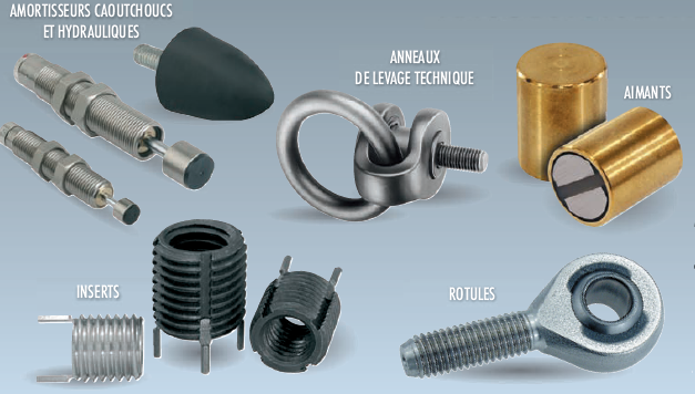 Amortisseurs caoutchoucs et hydrauliques, Anneaux de levage technique, Aimants, Inserts, Rotules