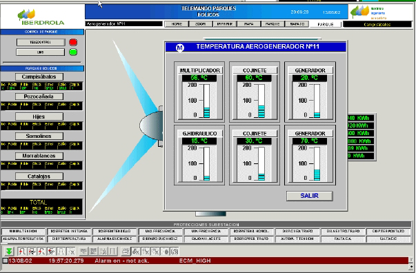 -Au niveau supérieur, on dispose d´une vue panoramique des alarmes, des valeurs de données et des compteurs les plus importants comme l´exige le contrôle des turbines et afin de détecter les défaillances qui exigent une intervention ;