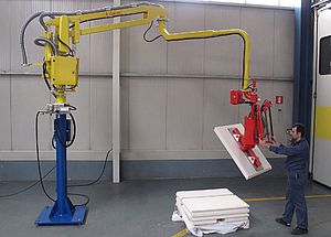 Utilisant uniquement l’air comprimé comme énergie, ce manipulateur Dalmec de type Partner Equo est équipé d’un dispositif de préhension performant pourvu d’un système à ventouses approprié. Cet équipement pourvu d’un bras associé à un outil de préhension à ventouses, a été développé et réalisé sur mesure selon les caractéristiques géométriques des panneaux de bois à manipuler, et des opérations à effectuer. Ce principe de manipulation industrielle permet aux différentes charges de perdre leurs poids, quelles qu’en soient les dimensions à déplacer, avec des mouvements sollicités par l’opérateur qui sont obtenus en toute sécurité par simple guidage manuel. Enfin, chaque projet répond aux exigences de la Directive 2006/42/CE relative aux machines et fait l’objet d’une scrupuleuse et systématique analyse des risques.