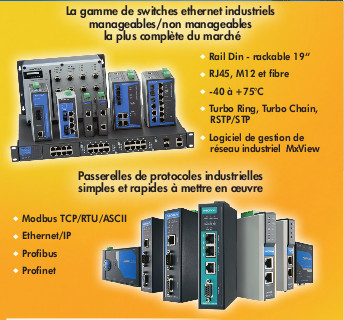 La société ADM21 propose une gamme très complète de switches Ethernet industriels manageables ou non manageables mùontables en Rail Din ou rackable 19", et des passerelles de protocoles industrielles simples et rapides à mettre en œuvre