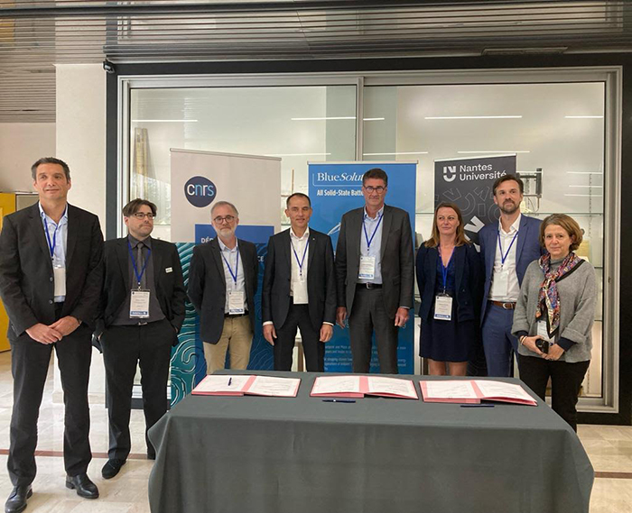 Deux rapprochements entre des laboratoires publics de recherche et l’entreprise Blue Solutions ont été lancés afin de concevoir des batteries tout solide aux performances améliorées. Le laboratoire commun LI2 signé à Grenoble s’appuie sur l’expertise du Laboratoire d'électrochimie et de physicochimie des matériaux et des interfaces (Grenoble INP-UGA/CNRS/Université Savoie Mont Blanc). Il a pour objectif d'accélérer le développement de la première batterie Lithium métal de nouvelle génération. Son objectif est de concevoir une nouvelle génération de batterie lithium métal fonctionnant à température ambiante, sécuritaire et à haute densité d’énergie pour le transport électrifié et les applications au stationnaire. A Nantes, le laboratoire commun IMNBlue Lab fait intervenir des équipes de recherche de l’Institut des matériaux Jean Rouxel (CNRS/Nantes Université) et vise également l’optimisation des batteries. Les axes de collaboration portent notamment sur la protection du matériau actif d’une des électrodes des batteries contre les réactions indésirables et la stabilisation des matériaux composant les batteries qui fonctionnent à haute tension. Il s’agit également d’identifier la meilleure composition pour permettre un fonctionnement durable en charge et décharge rapide, mais aussi de mieux comprendre les propriétés des matériaux ainsi que les mécanismes de défaillances.